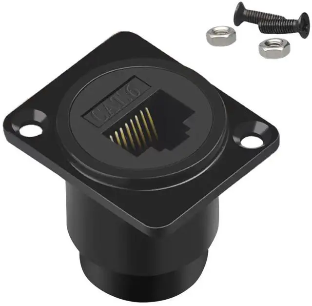 Vszerda RJ45 Panel Mount Coupler, 1-Pack D-Type RJ45 Pass Though Connector, CAT6/CAT5E/CAT5 Female to Female LAN Network Bulkhead Extension Socket