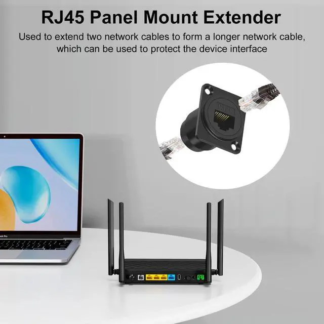 • [RJ45 Panel Mount Extender]used to extend two network cables to form a longer network cable, which can be used to protect the device interface and extend the life of the device.