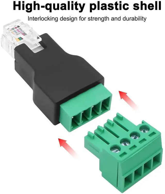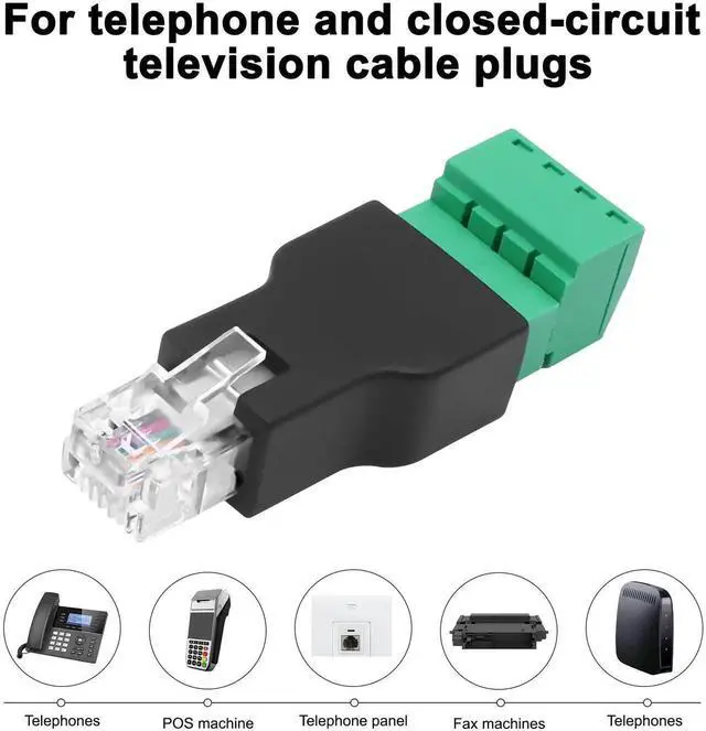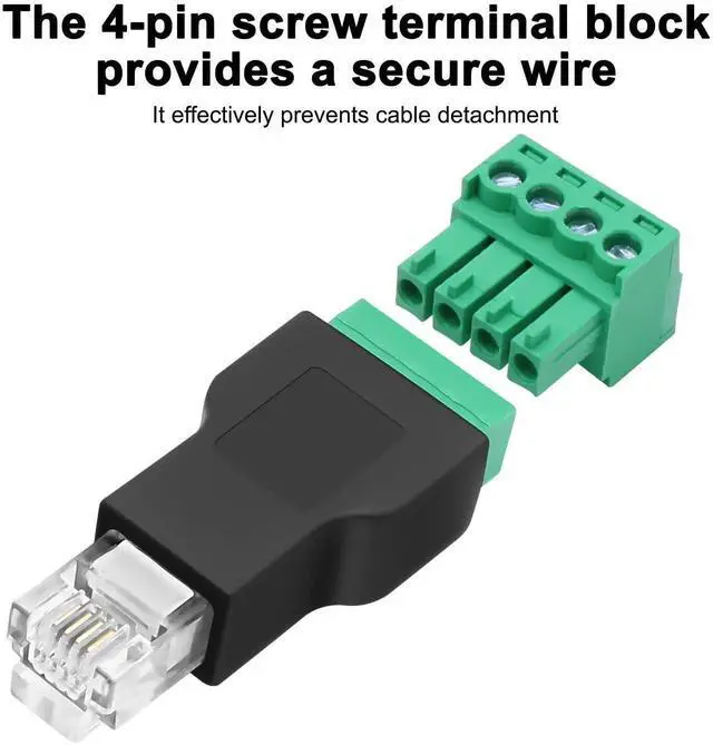 - [User-Friendly Operation]This 6P4C (6-pin, 4-conductor) connector that requires no soldering, making it easy to use and install. Simply insert the wires into the corresponding screw terminals and tighten the screws to achieve a secure connection, which can be repeatedly disassembled. Compact and portable, the sleek design ensures stable connections and easy portability.