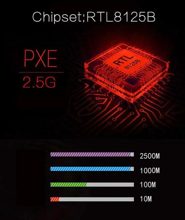 PCI Express RTL8125B 2.5G network adapter is combines a four-speed IEEE802.3 compatible Media Access controller with a four-speed Ethernet transceiver, it is complies with the IEEE802.3u specification for 10/100Mbps Ethernet,the IEEE802.3ab specification for 1000Mbps Ethernet and IEEE802.3bz specification for 2500Mbps Ethernet.