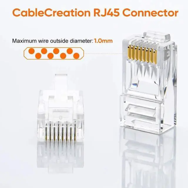 • Connectors: 10 pack of RJ45 Ethernet connectors for Cat6 and Cat5e cables