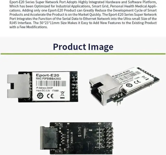 Vszerda Eport-E20 Network Server Port FreeRTOS TTL Serial to Ethernet Embedded Module DHCP 3.3V DHCP TCP IP Telnet Converter MCU (10pcs)
