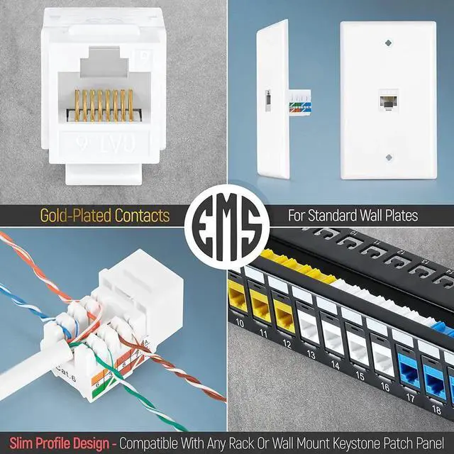 High Durability - Corrosion resistant nickel, and gold plated contacts. Each RJ45 keystone jack is made from high-grade plastic, and stands strong against impact and damage.