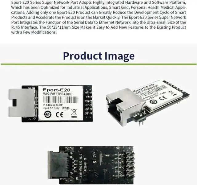 Support TCP / IP / Telnet / Modbus TCP protocol, Support serial port to 10 / 100M Ethernet data transmission, serial port rate up to 921600 bps, Support 10 / 100M Ethernet adaptation, Support webpage simple configuration, Support data SSL / AES / DES security encryption configuration, Support web OTA wireless upgrade, Supports