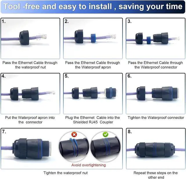 IP67-lEVEL PROTECTION - VCELINK waterproof ethernet coupler provides professional protection for your RJ45 ends from the outside elements (dust, rain, corrosion, etc.) The 7 indicates of IP67 means protecting against short periods of immersion in 1m depth of water.