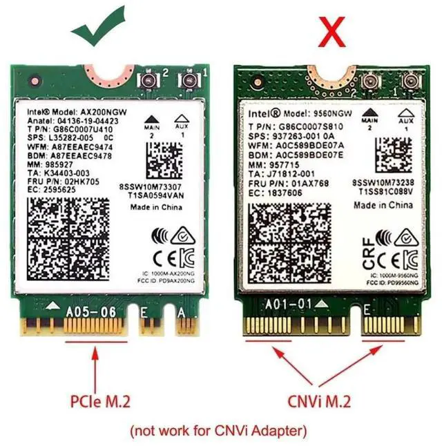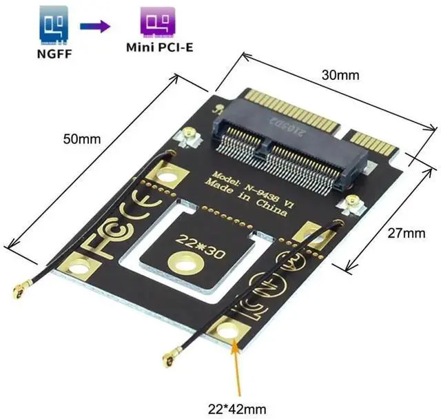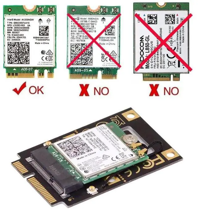 Note: Only support KEY A or KEY A+E to PCI-E(The single Key E interface can't be used),Not fit SSD ,3G/4G module card.