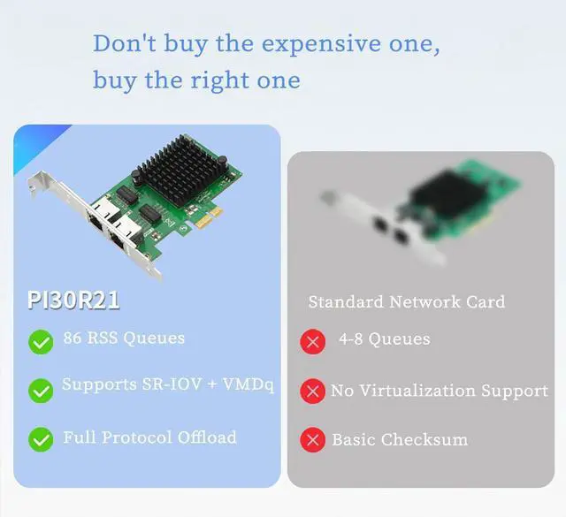 Enterprise-Grade I350-T2 Chipset Dual-port design supports full-duplex 1 Gbps per port for stable, high-efficiency network performance.