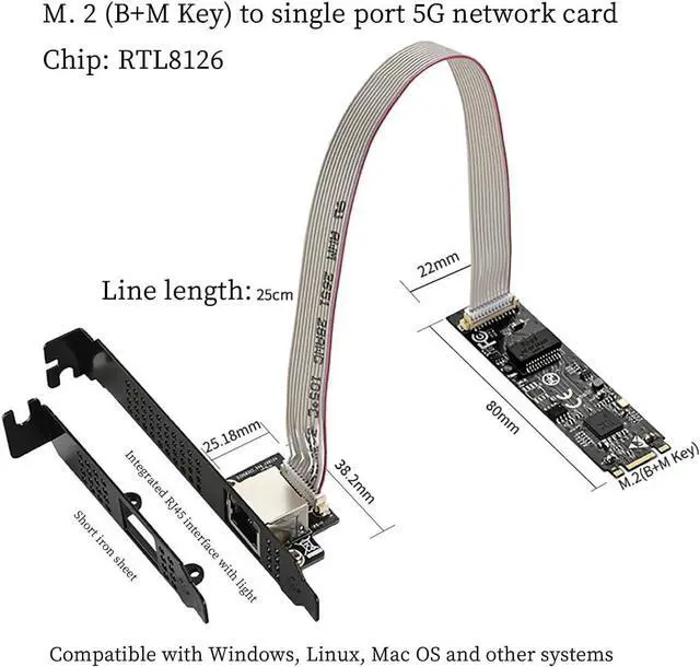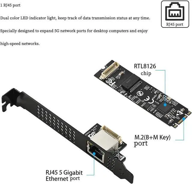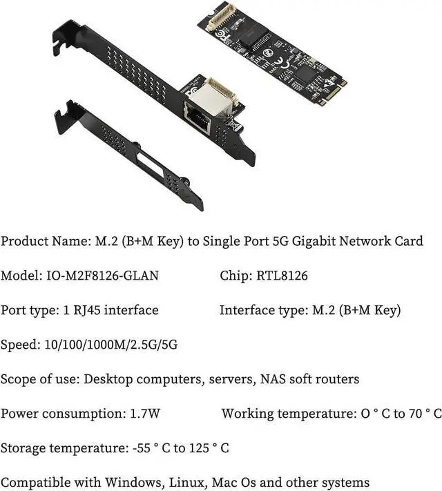 • Name: M.2 (B + M Key) to single-port 5G Gigabit Net Work. Port Type:PCI.