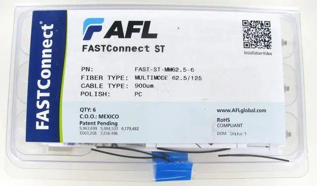 AFL FastConnect ST OM1 62.5 Multimode Fiber Optic Connector, 6-Pack FAST-ST-MM 62.5 -6