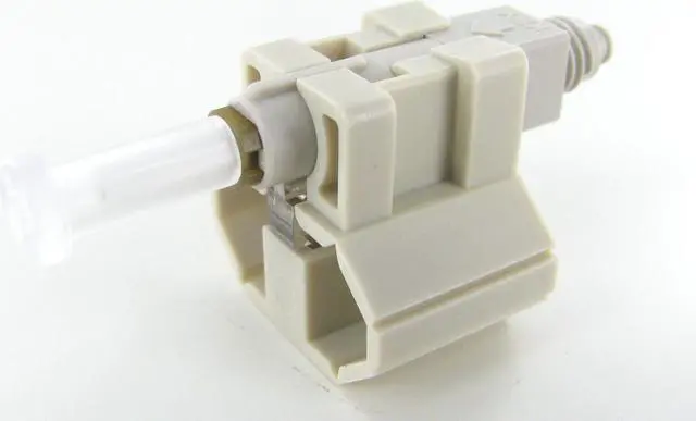 FASTConnect® connectors are compatible with 250 µm and 900 µm optical fibers, as well as 900 µm, 2 mm and 3 mm cordage. All primary fiber types are supported, and each connector is color coded per industry-standard requirements to aide in identification during and after installation. A factory-installed wedge clip (included with each connector) is removed and discarded upon completion of the termination. Incorporated into this device is an innovative, translucent wedge enabling the use of a common VFI to provide a pass/fail signal once physical contact is achieved.