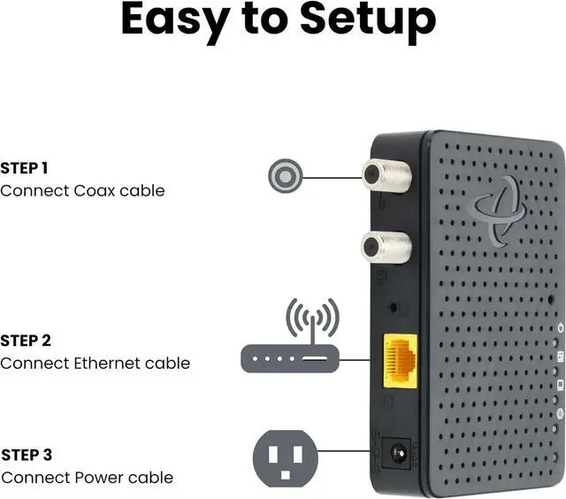 PLUG N PLAY SETUP. Simply connect this Coax to Ethernet Adapter to any coax outlet and into your WiFi router or access point. Two MoCA ethernet adapters automatically complete your MoCA LAN network connection.