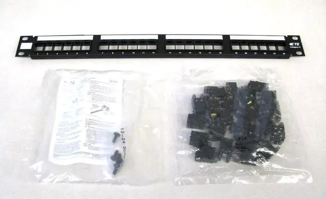 TE Connectivity Cat6 24-Port Patch Panel w/Jacks, Black