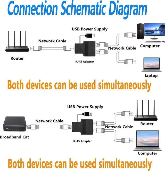 Use SimultaneouslyRJ45 Ethernet splitter can divide a network cable into two outputs, the speed of each cable group (A and B) can reach 100 megabytes. And the signal transmission of two cable groups will not interfere with each other. Can connect two computers at the same time Internet access the Internet simultaneously.