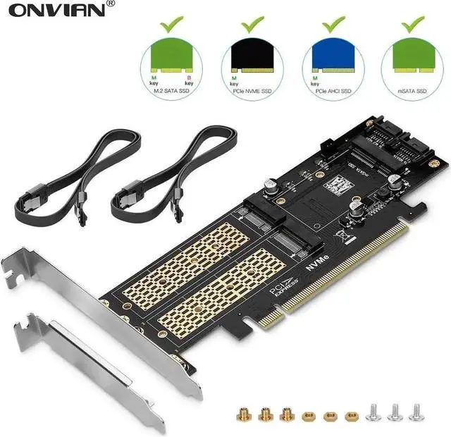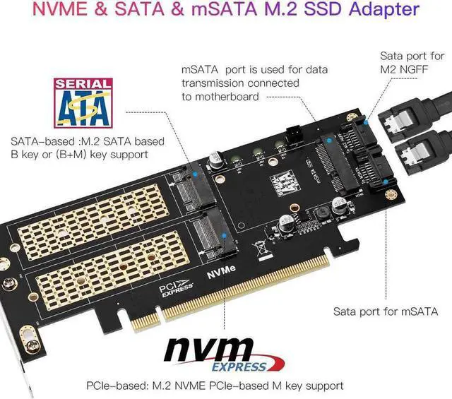 • 3 in 1 NGFF and mSATA SSD Adapter Card M.2 NVME to PCIe 16X/M.2 SATA SSD to SATA III/mSATA to SATA Converter+2 SATA Cable
