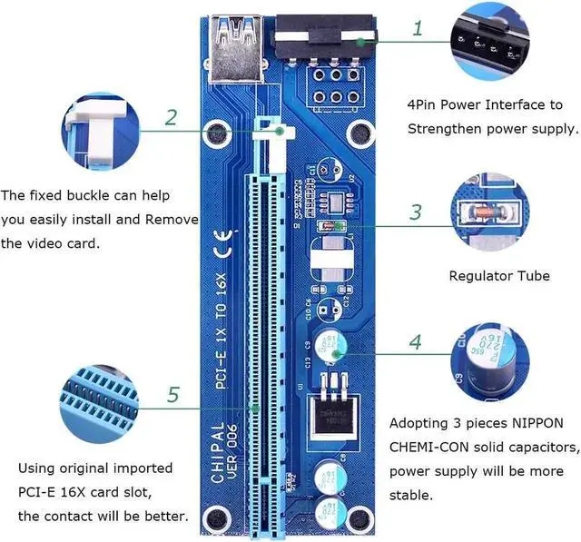• USB 3.0 PCI-E to PCIe PCI Express 1x to 16x Extender Riser Raiser Card Adapter SATA 6Pin Power Cable for BTC Mining