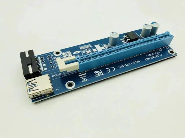 Features: · Brand new and high quality. · PCI-E 1x to 16x Mining Machine Enhanced Extender Adapter With Power Cable· With power cable and USB 3.0 cable, Digging Preferred, Stable anti-burn· More safer, more efficient, more practical· With 3x solid capacitors, making graphics power supply more stable and secure. · With SATA 15pin Male to 4pin power cable, strengthen power supply, so that graphics power from the motherboard independent, so multi-card reduce motherboard burden. · PCI-E 16x slot with lock for easy removal and fixed graphics card, so that graphics will not fall from the slot. · Compatible with 1x, 2x, 4x, 8x, 16x card·