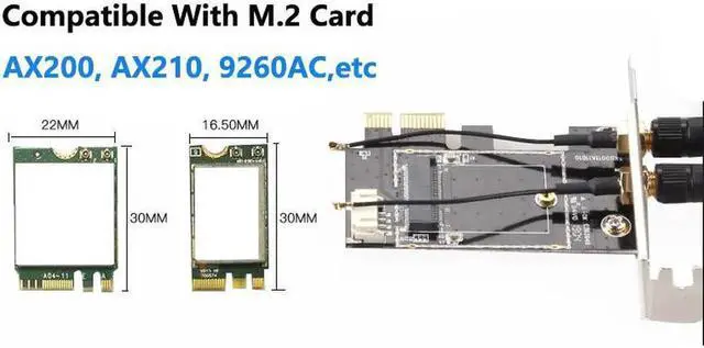 This adapter can support 7260NGW /8260NGW/ 8265NGW NGFF() Wireless card. Aslo it can work with Broadcom, Atheros wifi card with NGFF slot.