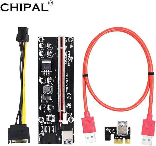 2019 VER009S Plus PCI Express PCIE PCI-E Riser Card SATA 1X to 16X 6Pin Power 0.6M USB 3.0 Cable for BTC LTC Mining