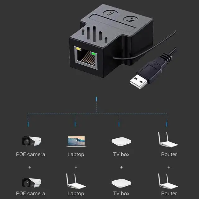 ![Alt view image 4 of 6 - Aomoproing Ethernet Splitter, 100Mbps Ethernet Splitter 1 to 2[2 Devices Simultaneously Networking], LAN Splitter Adapter with USB Power Cable, Internet Splitter for Cat5/5e/6/7/8 Cable](https://c1.neweggimages.com/productimage/nb640/C0U0S2509270CC59A71.jpg)
