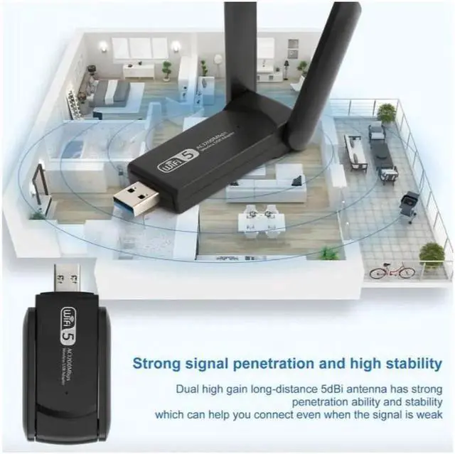 Features: 1200Mbps Super High-speed and Dual-Band - The 1200Mbps wifi adapter can upgrade the PC network speed to 802.11 ac, ensuring you enjoy a faster network environment. Using 5GHz (867Mbps) or 2.4GH z (400Mbps) dual-band technology, you can freely switch between the two frequency bands. Ensure that the network signal is more stable, effectively solve the blind area problems such as partition walls and long distances, so as to achieve the ultra-high speed of the 1300 wireless adapter. High-Gain Dual Antennas- Equipped with two high-gain dual-frequency omnidirectional antennas, which can be rotated 180°, making it easier for the wireless network card to receive wifi signals, greatly enhancing the reception strength of the usb wifi adapter and sending signals, and the coverage is wider. Provide long-distance and delay-free connections throughout the house to ensure the stability and smoothness of wireless connections on desktops, laptops and PCs. USB 3.0 Ultra-Fast Transfer Rate - The wireless adapter supports a transfer rate up to 5Gbps, which is 10 times faster than USB 2.0. It has strong compatibility and energy-saving features, while meeting the requirements of USB 3.0, and can also be backward compatible with USB 2.0 and 1.1 devices, thereby ensuring that the Wi-Fi adapter has the best performance and a more stable Internet connection.