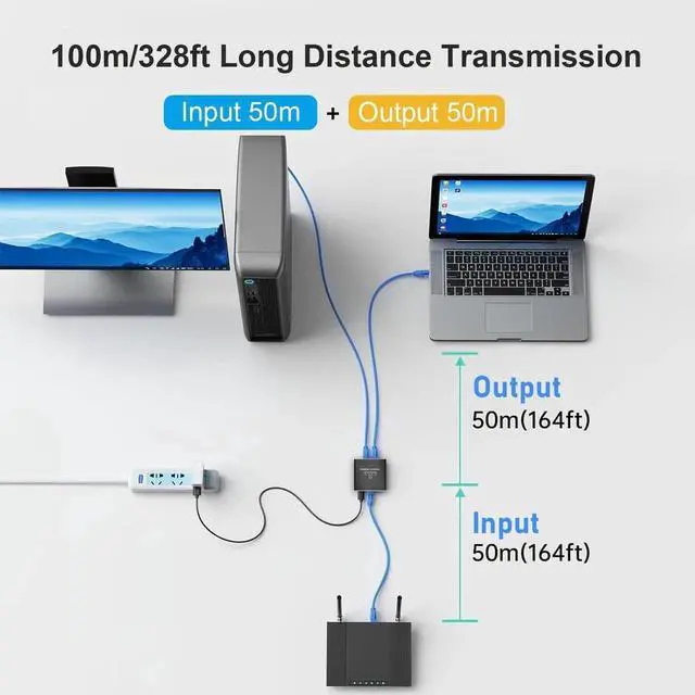 Plug and Play: Gigabit ethernet splitter is equipped with USB charging cable, plug and play, no need to install additional software or drivers, transmission distance up to 100 meters. Network splitter is designed with aluminum alloy housing, built-in thick and environmentally friendly PCB circuit board, and RJ45 8-pole standard jacks to ensure more stable signal transmission and safer use.(Note: Cannot be used without a power connection)