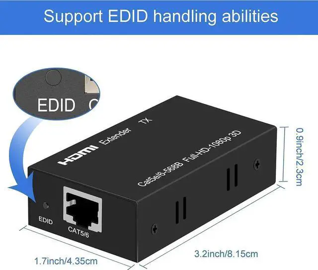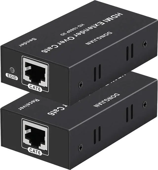 The HDMI extender can use a CAT6 cable to transmit the HDMI signal to a display no more than 196ft.