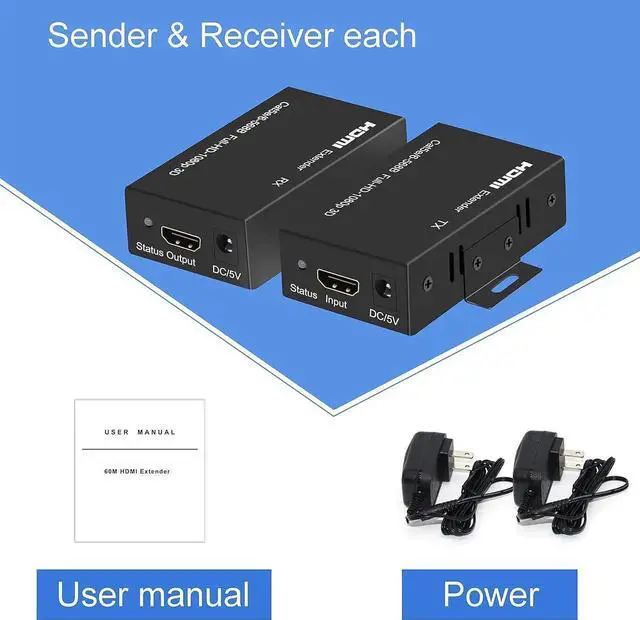 Connect single Cat6 cables up to 196ft instead of HDMI cable between TX and RX Extender