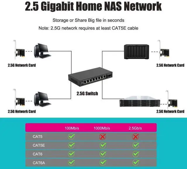 2.5 Gigabit Ethernet Network Card for Desktop PCs, featuring the Realtek RTL8125BG Controller, RJ45 LAN Port, PCIe 2.0 x1 Interface, and both Regular & Low-Profile Brackets