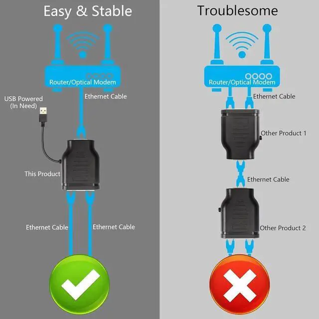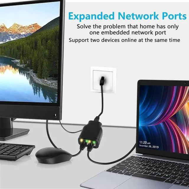Simultaneous Internet Access: RJ45 network splitter is easy to transfer, directly plug in a network cable to connect, two devices can surf the Internet at the same time, simple and fast, and