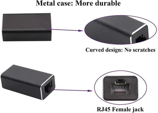 This RJ45 female-to-female coupler adopts sturdy metal shell for enhanced shielding and stable network transmission. It easily connects two Ethernet cables to extend LAN distance without signal loss. Universal compatibility covers Cat5, Cat5e, Cat6 and Cat7 cables. Compact and portable, plug-and-play for quick wiring. Durable construction prevents loosening and ensures long-term stable connection for routers, computers, switches and other network devices.