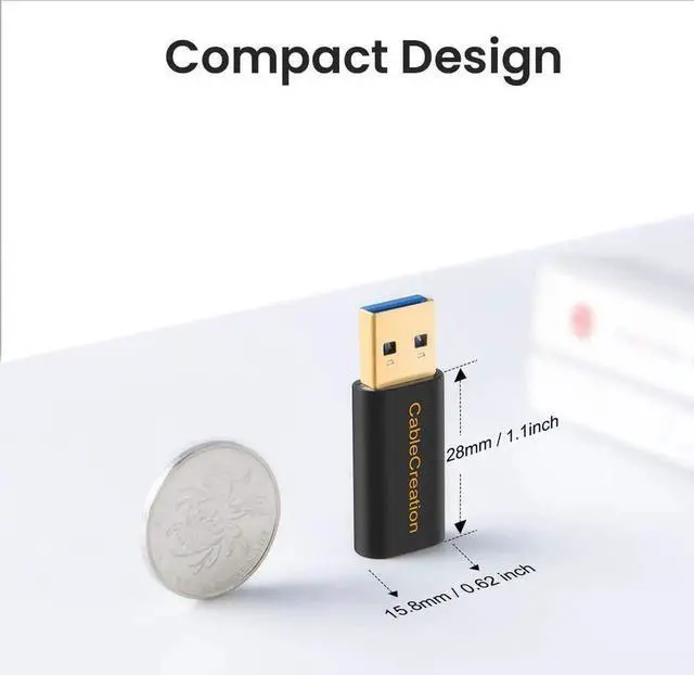 This USB-A to USB-C female adapter offers convenient bidirectional connection for charging and data transmission. Featuring USB 3.1 technology, it ensures smooth 5Gbps data speed and reliable power delivery. The tiny low-profile design saves space and prevents port blockage. Durable housing guarantees long-term daily use with stable contact. Ideal for StreamCam, VR link setup, laptops and more USB-C enabled equipment.