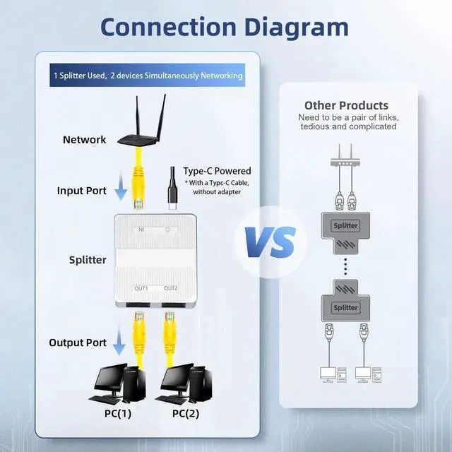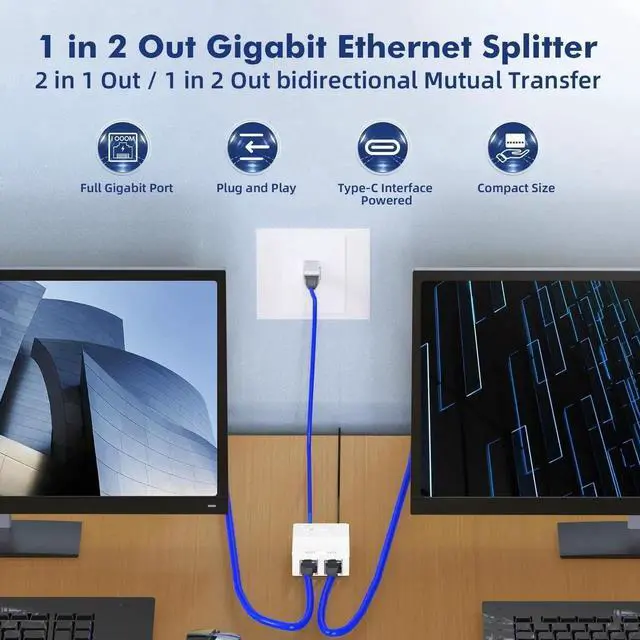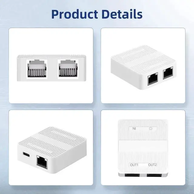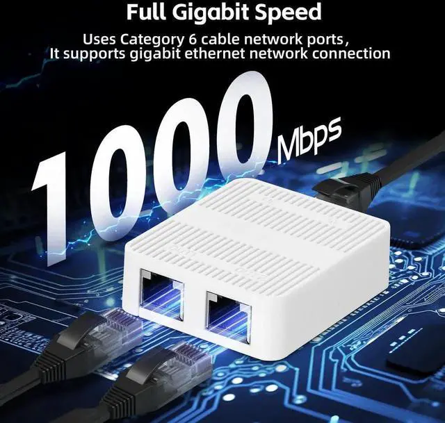 This mini white 3-port gigabit Ethernet switch serves as a practical 1-to-2 network splitter to solve insufficient LAN port issues. It delivers stable gigabit performance for streaming, gaming and office work. Equipped with a universal Type-C power port for easy power supply. Portable and sleek in appearance, it fits perfectly in home, office and compact desktop environments. Tool-free installation allows instant use, a cost-effective solution for wired network expansion.