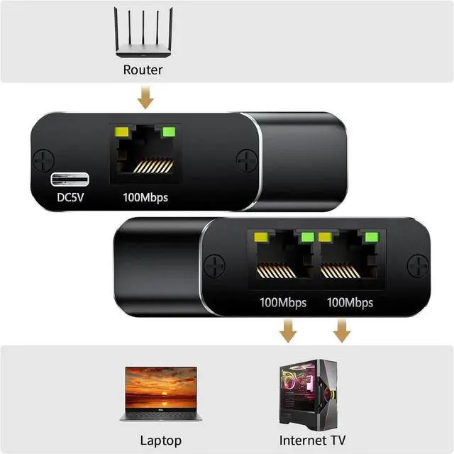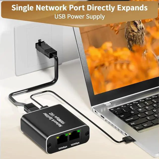 This 1 to 2 port RJ45 Ethernet splitter efficiently solves the problem of insufficient wired network ports. It supports simultaneous networking of two devices and provides stable 100Mbps network speed. The extra USB power supply design enhances operation stability and avoids network drop or signal instability. Compatible with all common network cable specifications, it features plug-and-play operation without complicated drivers or settings. Mini and portable design saves desktop space, ideal for routers, computers, smart TVs and daily home & office network expansion.