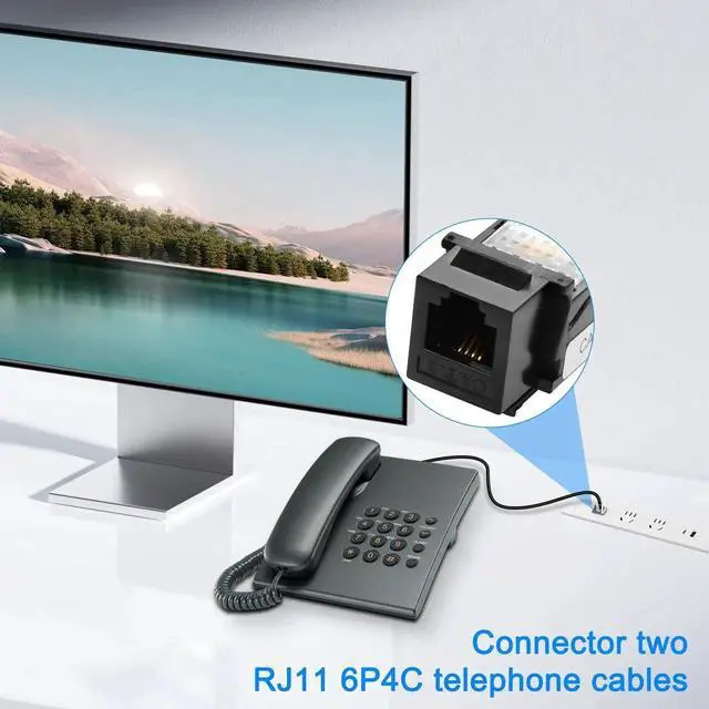This CAT3 RJ11 female-to-female telephone coupler easily extends and connects telephone lines. It delivers steady signal transmission for clear calls and smooth DSL network operation. The 20cm lightweight cord offers flexible layout in limited spaces. Plug-and-play with no extra tools required, sturdy construction prevents poor contact and signal loss. Perfect for home, office telephone equipment, fax and broadband line connection and extension.