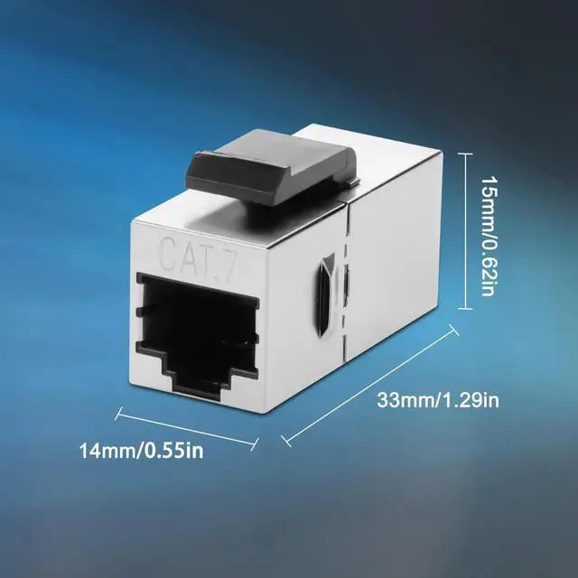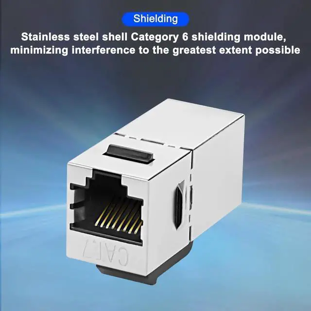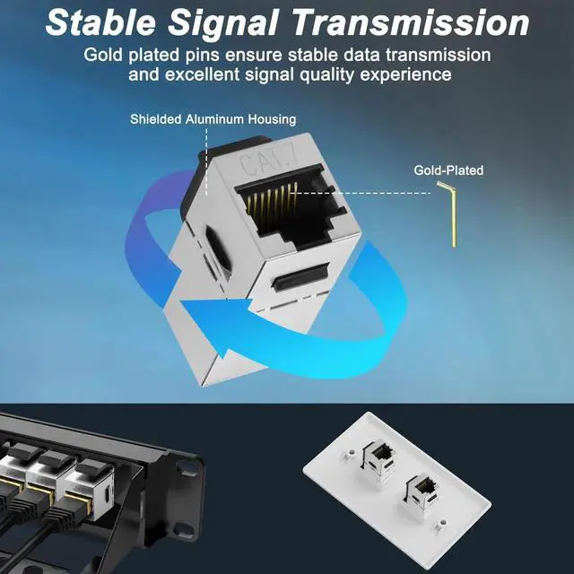This shielded Cat7 keystone coupler adopts female-to-female 8P8C structure to easily extend and connect Ethernet cables. The integrated full-shielded housing effectively isolates external electromagnetic interference and signal crosstalk, ensuring high-bandwidth, low-latency transmission. Standard keystone form factor supports seamless installation into wall plates and patch panels for tidy wiring management. Backward compatible with multiple network cable specifications, it meets home, office and cabinet integrated networking needs. Plug-and-play with solid construction, ideal for permanent wall wiring, network cabinet layout and stable line connection.
