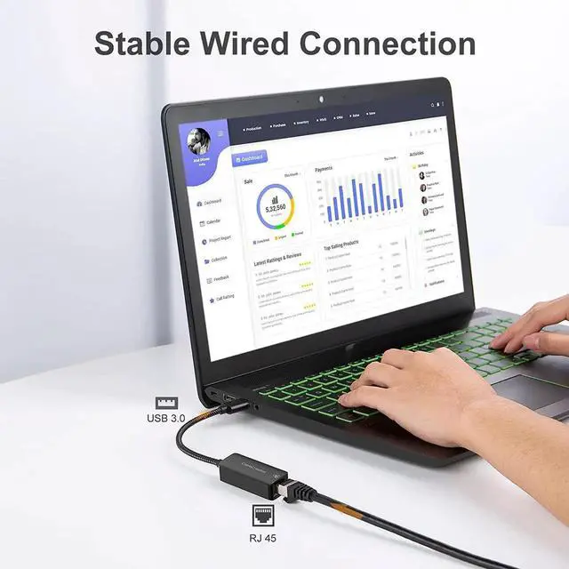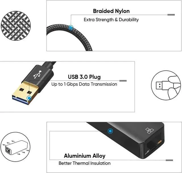 This USB 3.0 to RJ45 gigabit ethernet adapter offers fast and stable wired network connection for devices without built-in ethernet port. It delivers 1000Mbps high-speed data transmission for smooth video streaming, large file downloads and online work. The sturdy aluminum housing enhances durability and heat dissipation. Plug-and-play setup requires no complicated drivers, perfectly compatible with MacBook, Surface Pro, ultrabook, desktop PC and more. Lightweight and portable, it is an ideal network accessory for home, office and business travel.
