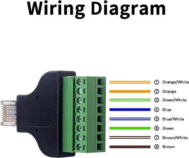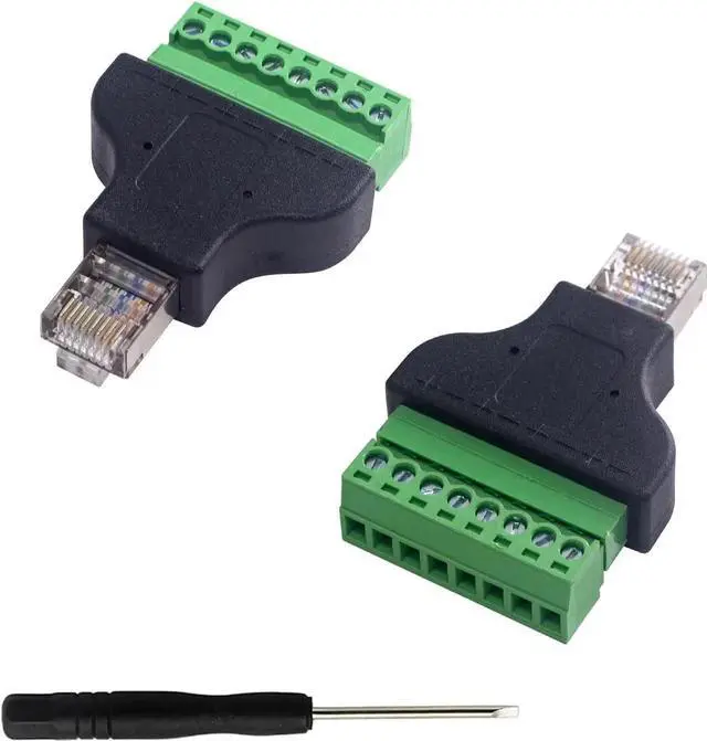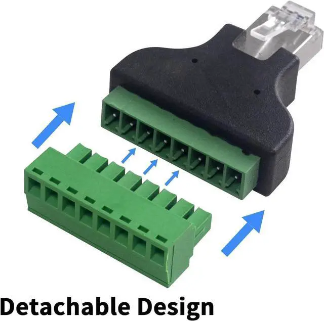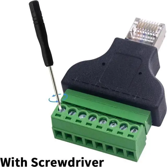 This RJ45 screw terminal adapter converts standard 8P8C Ethernet interface to convenient 8-pin screw terminal blocks. It enables quick and safe hardwired connection without soldering or crimping. Compatible with Cat5, Cat6 network cables and widely used for CCTV surveillance, network equipment, industrial wiring and DIY circuit projects. Sturdy structure ensures long-term stable signal transmission, simple to install and perfect for indoor wiring arrangement.