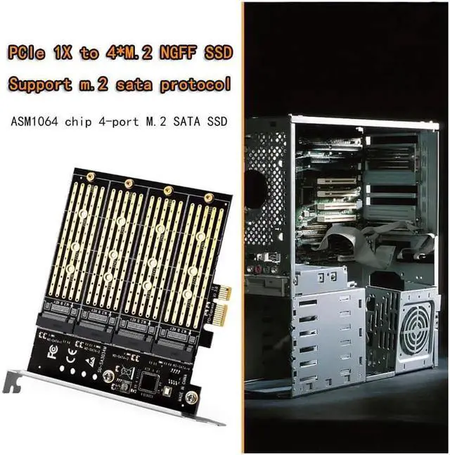 This PCIe to M.2 adapter card adopts PCI Express 3.0 X1 channel design, expanding up to 4 B Key M.2 NGFF SATA SSD interfaces. It provides reliable signal transmission and stable power supply, perfectly meeting large-capacity storage expansion and mining assembly needs. Plug and play with simple installation, it is compatible with mainstream motherboards and B-key SATA M.2 solid state drives. High-quality welding and heat dissipation design ensure continuous stable operation, a cost-effective solution for multi-SSD expansion and mining rig building.