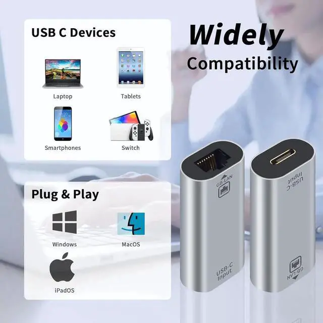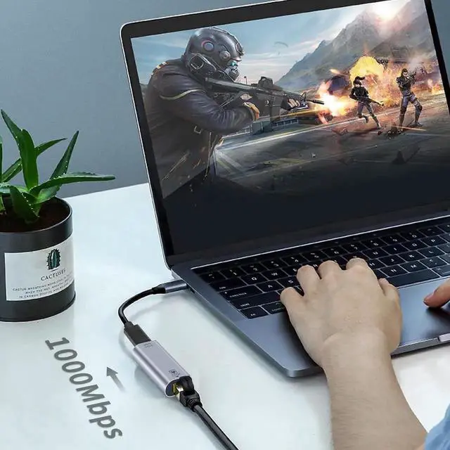 This USB-C to RJ45 gigabit Ethernet adapter provides a stable wired network connection by converting USB-C port to standard RJ45 LAN interface. Supporting 10/100/1000Mbps auto negotiation, it delivers lag-free network performance for office work, video conference and high-definition streaming. Female-to-female portable design is easy to carry and install without extra drivers. It effectively replaces unstable Wi-Fi connection, ideal for MacBook Pro, iPad and more Type-C devices to achieve reliable wired network access.