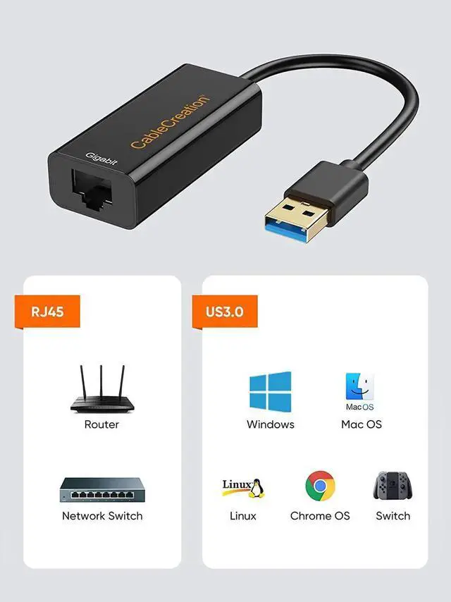 This USB 3.0 to RJ45 gigabit Ethernet adapter upgrades your device to reliable wired network access, delivering 10/100/1000Mbps auto-adaptive bandwidth. It effectively solves weak Wi-Fi issues, ensuring steady connections for gaming, streaming, video calls and office work. Universally compatible with Nintendo Switch, laptops, Mac devices, Surface series and desktop PCs. Sleek mini size and plug-and-play operation make it a convenient, portable networking accessory for home, travel and business scenarios.