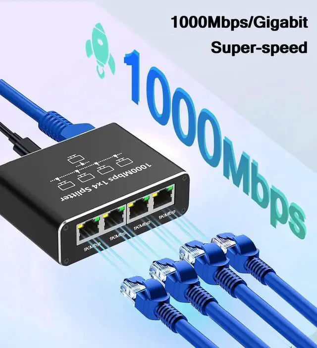 [Gigabit High Speed Transmission]The ethernet switch can ensure stable and reliable data transfer between devices at rates up to 1000Mbps,Internet cable splitter are available using cat6/7/8 cables to ensure fast and stable data transfer. High-speed transmission speed makes your work and life more efficient and fun. Note: three computers can only share 1000Mbps network bandwidth, and one computer supports a maximum of 1000M when connected.