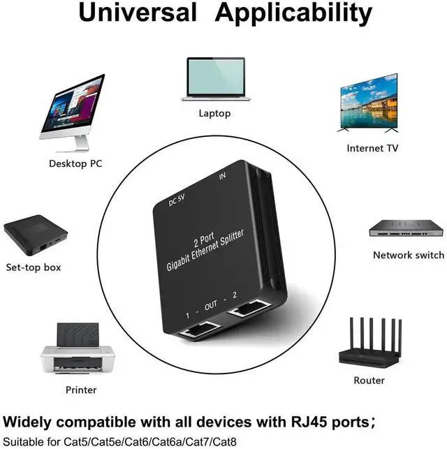 1. Suitable for a variety of networks, compatible with Cat8/ Cat7/ Cat6a/ Cat6/ Cat5/ Cat5e Network Ethernet Cable.