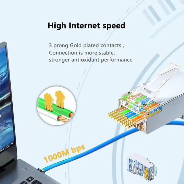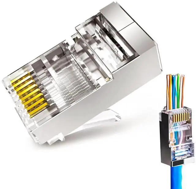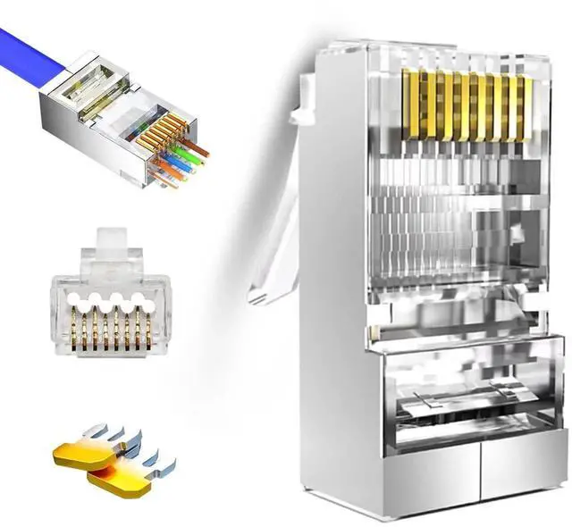 cat6a rj45 connector shielded rj45 connector cat6a connector cat6 shielded rj45 connectors cat 6a rj45 connectors shielded rj45 connector cat6a rj45 connector cat 6a rj45 connectors cat6 shielded rj45 connectors GIGABIT TRANSMISSION & FTP ALLOY SHELL & SHIELDED & 23AWG & CAT6/CAT6A &8P8C 3 PRONG & GOLD PLATED & PASS THROUGH 20PCS PROFESSIONAL SHIELDED RJ45 CAT6 CAT 6A CONNECTORS 1.Metal shield transmission is more stable, carefully built FTP alloy shell, good shielding performance, to protect the internal cable from radio wave interference. Gigabit transmission. 2.Pass-Thru Design, ensure that wires are in the correct order, allows you to verify the correct T568A or T568B color sequence which minimizes bad terminations. 3.High Performance, gold plated 8p8c 3 prong makes the contact attach to the core closer and the data flow stable. 4.Our connectors are compatible with virtually every model of RJ45 crimper tool, supports 23-24 AWG Solid or Stranded FTP/STP Ethernet Cable. shielded rj45 connector cat6a rj45 connector cat 6a rj45 connectors cat6 shielded rj45 connectors