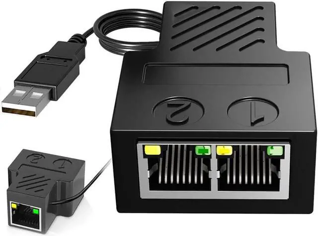 SIMPLE AND CONVENIENT -The RJ45 usb adapter with 0.8 meters USB power supply cable. And its design is one female interface to two female interfaces, which can wire two Ethernet cables, so that you can use your laptop in two rooms. (Condition of usages: Use the USB power supply cable and support two computers to share one Ethernet line simultaneously )