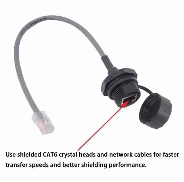 The industrial panel mount RJ45 ethernet lan cable coupler is used to turn the standard CAT5/5e patch cord into the waterproof type for the ethernet connecting in the harsh industrial or outdoor environments. A gasket seal provides optimum protection from moisture and other contaminants with an IP67 rating. Using the standards based RJ45 connection system insures compatibility with existing hardware.