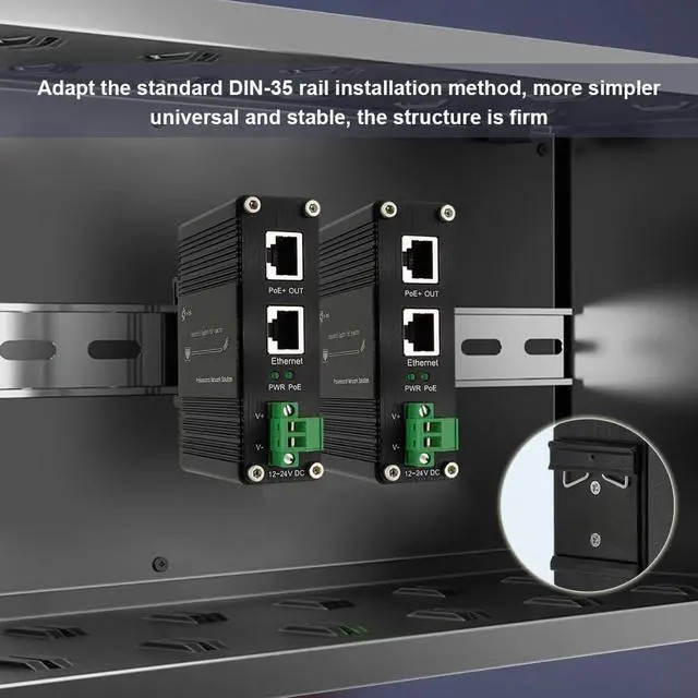 Din-Rail & Wall Mount- The gigabit PoE injector comes with 35mm Din-rail clip and wall mount accessories. You have more choices to install it.
