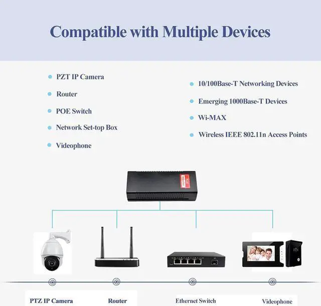 Auto-Sensing TechnologyThis POE Injector can detect both POE and non-POE devices. It will communicate with the device and provide an appropriate power source, for non-standard POE equipment, it will automatically detect and actively shut down to protect the equipment. And Safe on Low Power Devices Receive Only the Power They Need.