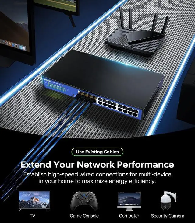 Reliable Data Transmission & Industry-Leading Energy EfficiencyThis network switch features dual-channel bandwidth allocation and IEEE 802.3 x flow control, which isolates gaming/4K streaming/downloads while ensuring zero packet loss during high-volume transfers. Our EWSmart technology dynamically adjusts power usage by up to 70% under partial loadsaving users over $100 annually on energy costs versus standard switches.