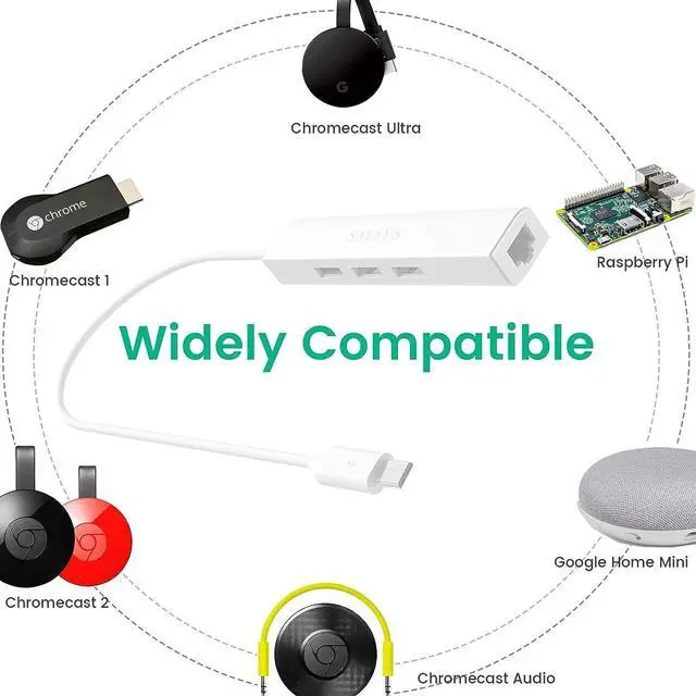 Wired Internet Connection - Google HDMI TV streaming device, Chromecast 1/2, Chromecast Ultra, Chromecast Audio, Google Home Mini, Nexus player, and Fire TV Stick 4K Cube