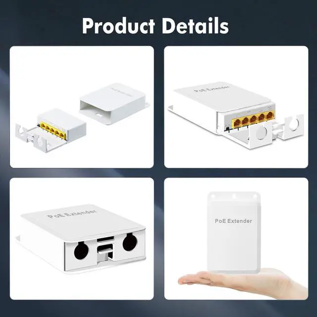 Easy Install Support wall mount, smaller size save space, suitable for many positions. Support 3-level cascading, can connect poe AP, camera, phone and other POE devices, extender POE coverage at low cost